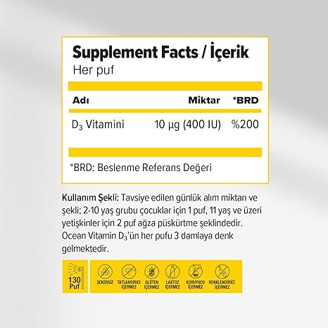 Vitamin D3 400 IU 130 Puf Oral Sprey (1 x 20 mL)