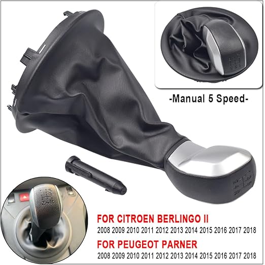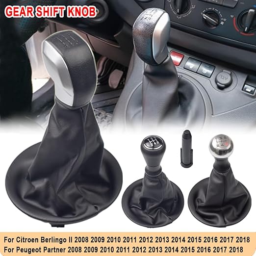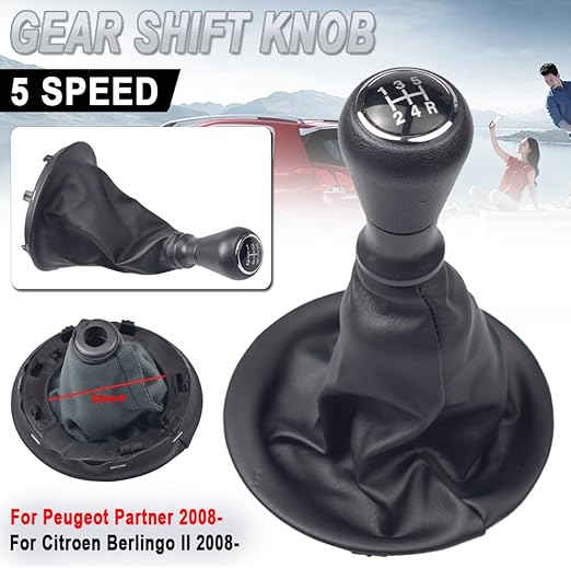 Vites Kolu Vites Topuzu Seviye Deri Çizme, Vites Kolu Körüğü Çizme Kapağı PU Deri Fit for-C-i-tr-o-e-n -B-E-R-Lin-go -II 2008-2018 (E-Kırmızı- 5 Hız ve Çizme)
