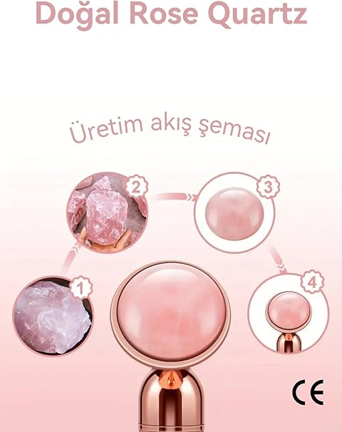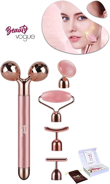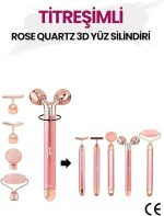 Vogue 3D Yüz Masaj Silindiri, 5 Başlıklı, Rose Quartz Titreşimli Cilt Bakım Cihazı, Profesyonel