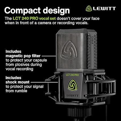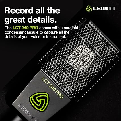 vokal enstrüman kayıt ve akış için XLR kondenser mikrofon – LCT 240 PRO profesyonel kondenser kapsül mikrofon montaj ve ön cam – ev kaydı için mükemmel (siyah, VP)