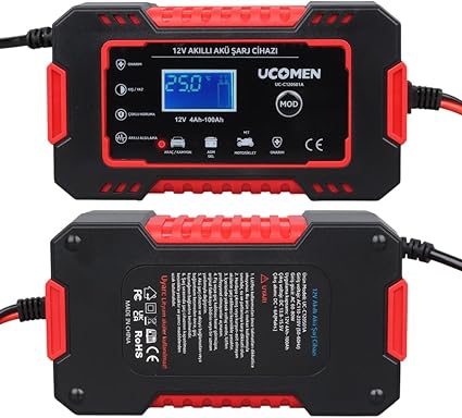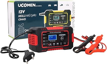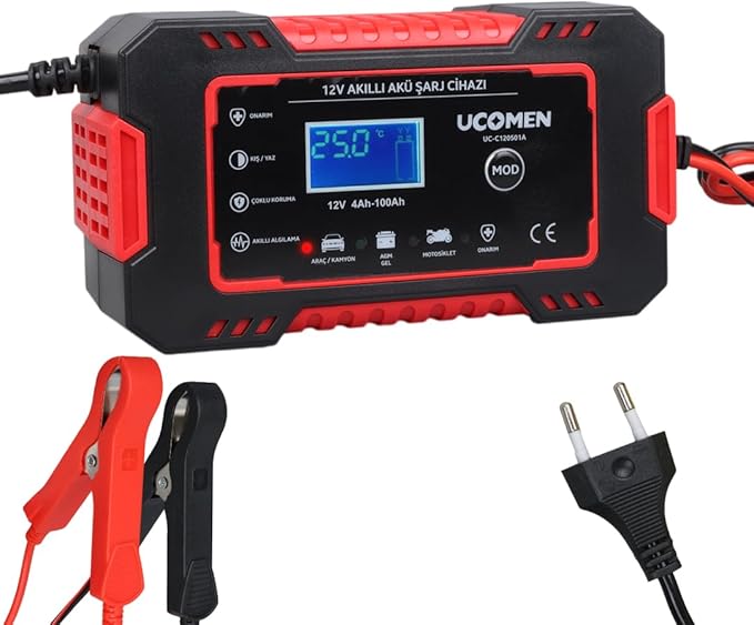Volt 6 Amper Led Göstergeli Akü Şarj Cihazı, Jel Asitli Sulu Kuru Kurşun Akülere Uygun, Takviye Yapamamaktadır, Kırmızı, Ucomen,