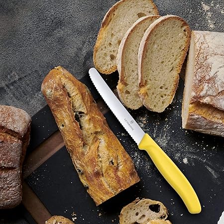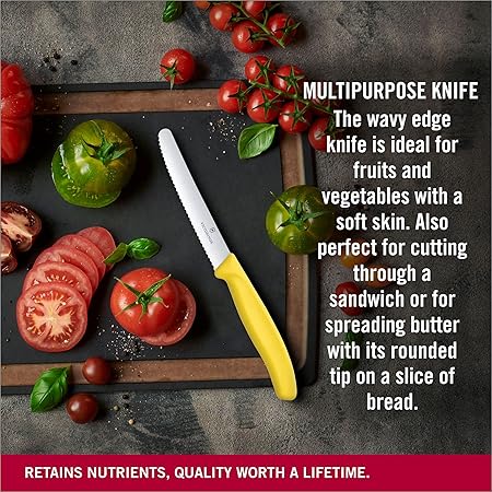 Domates ve sosis bıçağı, tırtıklı bıçak, ergonomik sap ve mükemmel boyut, İsviçre’de üretilmiştir.