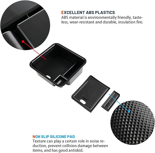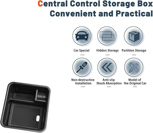 Nitelikler: Orta Konsol Saklama Kutusu Yüksek kaliteli ABS malzemelerden yapılmıştır, aşınma direnci ve çizilme direnci, iyi ısı direnci, kolay deforme olmaz. Çarpışmalardan kaynaklanan gürültüyü azaltmak için kaymaz kauçuk paspas