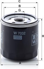 MANN-FILTER yağ filtresi W 7032 /boyutlar (mm): H = 79; A= 76; B = 63; C = 72 / orijinal ekipman kalitesinde, birinci sınıf filtre