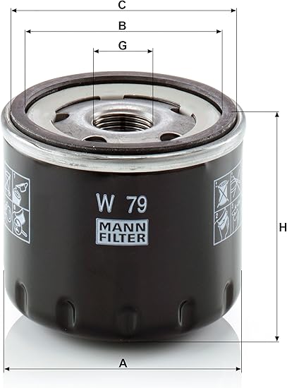 MANN-FILTER yağ filtresi W 79 / boyutlar (mm): H = 75; A = 78; B = 63; C 74 / orijinal ekipman kalitesinde birinci sınıf filtre