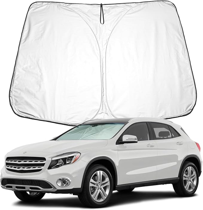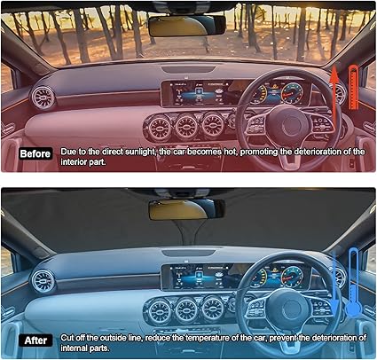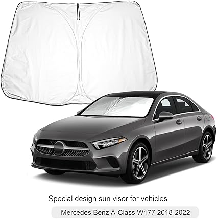 【Yüksek teknoloji malzeme】: Ön cam güneşliği Benz W177, yüksek kaliteli dayanıklı polyesterden yapılmıştır. Yansıtıcı gümüş kaplama. Ayrıca esnek ve benzersiz yan koruma ile ekranın kenarlarındaki herhangi bir parlamayı engeller ve arabanın ön camını %99 güneş ısısı ile engelleyebilir.