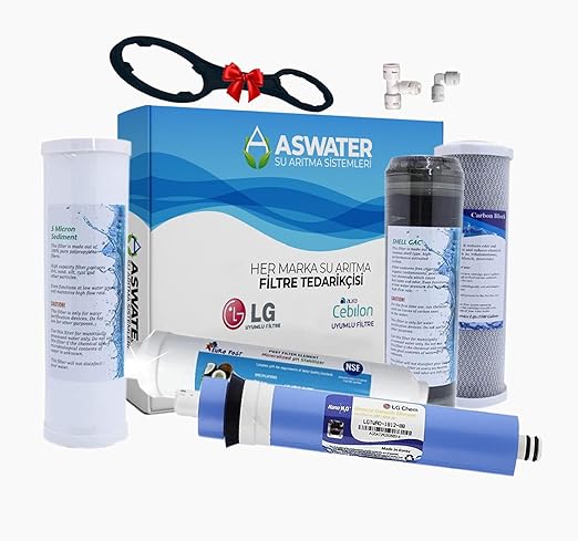 water ihlas Aura Cebilon Compact Uyumlu Açık Kasa Su Arıtma 5’li Lüx 10″ Filtre Seti 80gpd Lg Membranlı