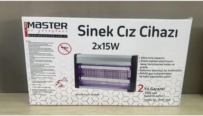 Watt Mor Işıklı Yeni Nesil Sinek Öldürücü 2x15W Cızz Sivrisinek Yokedici Tavana Asılan 2 Lambalı