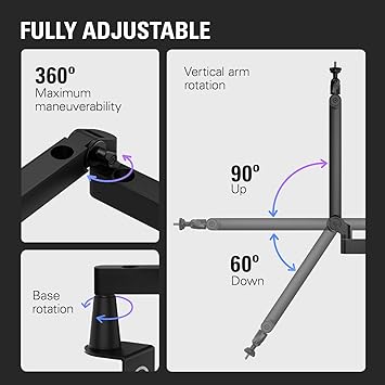 Birinci sınıf mikrofonunuz için stüdyo kalitesinde döner kol. Yukarı çıkar, rolünde parlar ve her engeli aşar