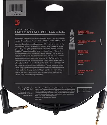 Waves D’Addario High End “American Stage” Gitar Kablosu | En Sevilen Aksesuarların En Yüksek Kalitesi | PW-AMSG-10 | 3 Metre | 1 Açılı Fiş