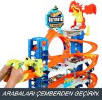 Wheels 2 adet metal araba ile birlikte gelen, 50’den fazla 1:64 ölçekli araba için saklama alanına sahip, 4 katlı oyun pisti içeren Hot Wheels Şehri Yeni Ultimate Garaj ile ejderhayı yen, HKX48