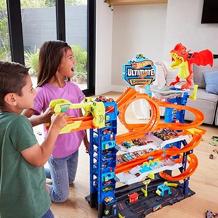 Çok katlı Hot Wheels Şehri Ultimate Garaj’da yarış, akrobatik numaralar yap ve ejderhayla mücadele et.