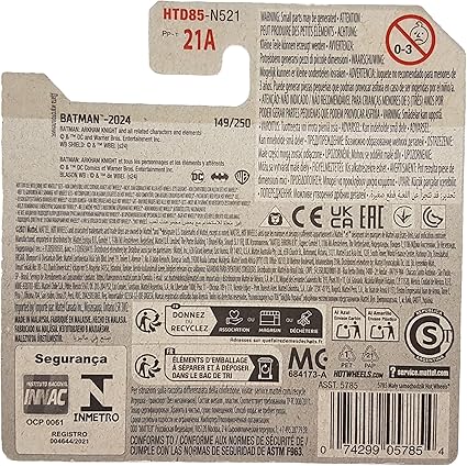 Wheels – Arkham Knight Batmobile – Batman 4/5 – HTD85 – Short Card – DC – koyu mavi metalik – Mattel 2024 – 1:64