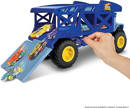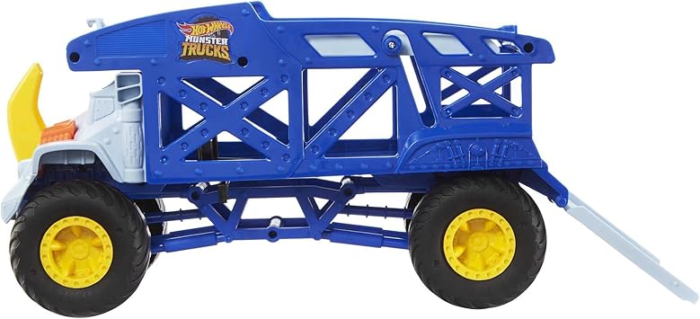 12 adet 1:64 ölçekli Monster Trucks veya 32 adet 1:64 ölçekli Hot Wheels aracı yüklenebilen bu iki katlı taşıyıcının, dönen dev tekerlekleri ve ön kısmında parlak sarı boynuzu bulunuyor