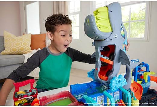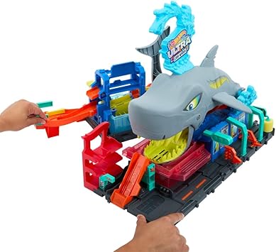Netflix dizisi ‘Let’s Race!’ dizisinde yer alan etkileşimli, renk değiştiren oyun için Hot Wheels City Ultra Shark Car Wash’a dalın