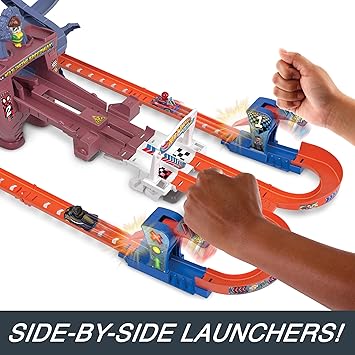 Kötü kahraman doktor ock’tan kimin kaçabileceğini görmek için örümcek adamı ve kara panter’i racerverse marvel pist seti’nde yarıştırın. Çocuklar, yarışçılarını fırlatıcılara yerleştirir ve beş turluk bir yarışta süratle yarıştırır. Bitiş çizgisini ilk geçen yarışın kazananı olurken ikinci sırada kalan doktor ock’un hareketli pençelerine yakalanır