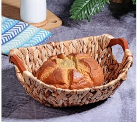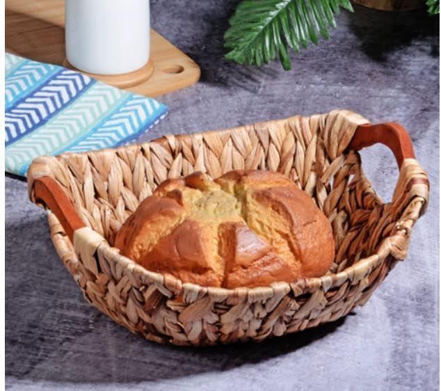 Wicker Serisi Bezli Oval Ahşap Kulplu Hasır Ekmek Sepeti