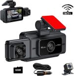 WiF araç sürüş kayıt cihazı, n araç DVR, kablolu yüksek çözünürlüklü 1080P kızılötesi gece görüşü ve Black1 32G’nin ön ve arka üç lensiyle aynı anda geri vites kaydı