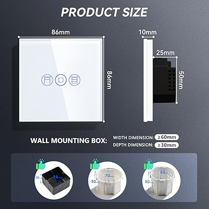WiFi akıllı panjur şalteri, uzaktan kumanda ve zamanlayıcı fonksiyonu, Smart Life/Tuya uygulaması ile, Alexa Echo ve Google Home ile çalışır, dokunmatik panelli WiFi jaluzi şalteri, beyaz