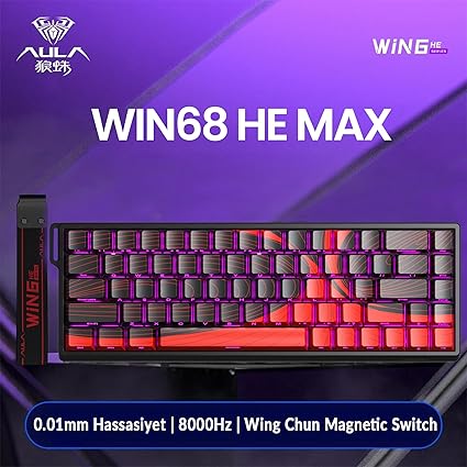 Bu manyetik klavye hangi switch türleri ile uyumludur? Aula WIN68HE MAX sadece manyetik switch türleri ile uyumludur. Hot swap özelliği sayesinde Wing Chun manyetik switch’ler kolayca değiştirilebilir ve diğer uyumlu manyetik switch modelleri ile kullanılabilir.