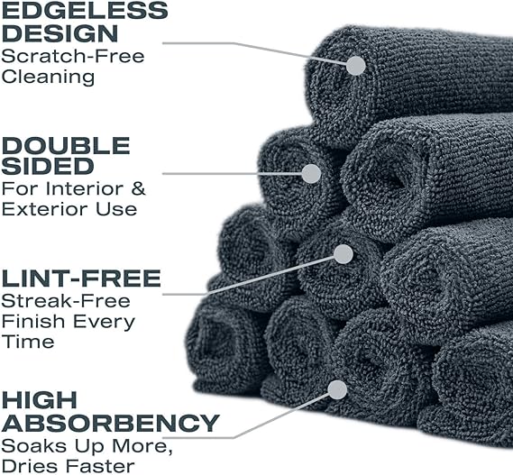 Wipe&Buff Mikrofiber Seramik Kaplama Uygulama Bezi 10’lu Paket, Tüy Bırakmaz Detailing Bezi, Çift Taraflı Araç İçi Bakım,Temizlik Bez