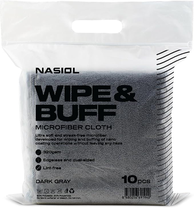 ✅ Nasiol Wipe&Buff ultra yumuşak bir mikrofiber bezdir ve kullanırken yüzeyde iz bırakmaz.