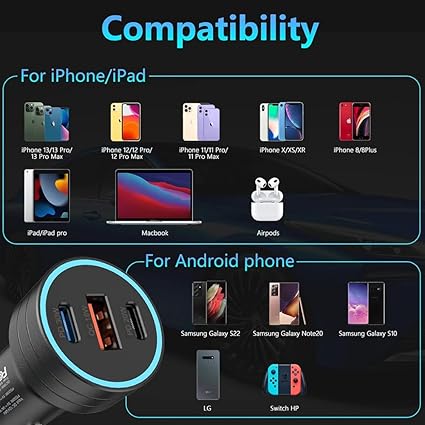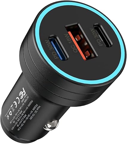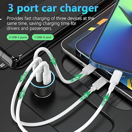 Wlue 60W PD Süper Hızlı Şarj Araç içi Çakmaklık Şarj Aleti 2x Type-c 60W PD 1x Usb3.0 18W