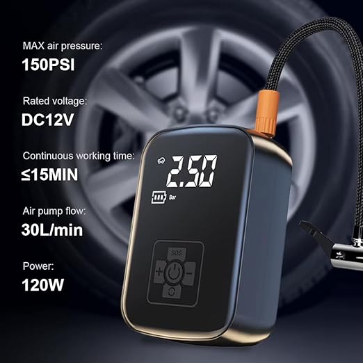 Wlue Kablosuz 3600 mAh Araç Kompresör 150 PSI Basınçlı Lastik, Bisklet, Motosiklet Şişirme Pompası