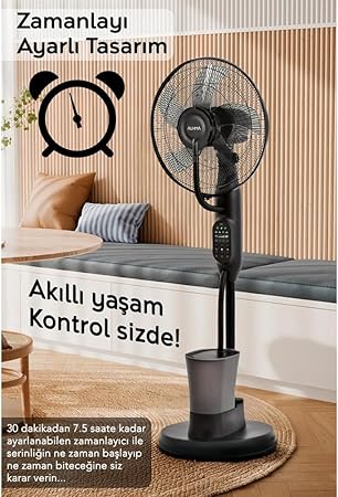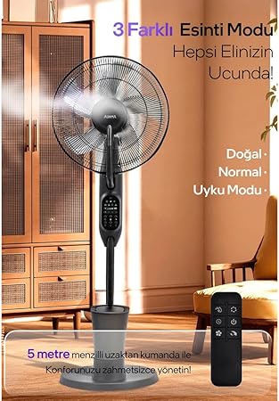 Cihazın Kullanımı: 1- Mod: FÇalışma modunu seçin, bu düğmeye basarak şu çalışma modlarından birini seçebilirsiniz: -Normal:Cihaz düşük-orta-yüksek hızda çalışacaktır. -Doğal (Natural):Hava akışı düzensiz şekilde çalışır, rüzgar esintisine benzer. düşük-orta-yüksek hız seçenekleri seçilebilir. -Uyku (Sleep):Bu modda, hava akışı yavaşça azalır.