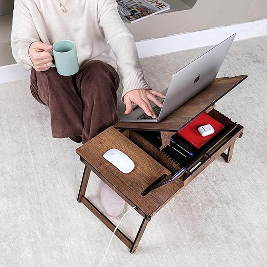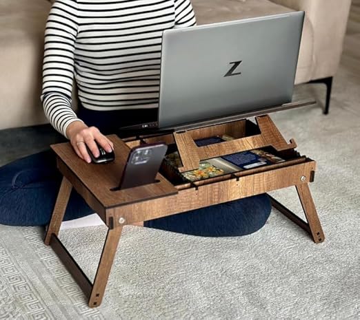 Rahatlık ve Esneklik:Yatağınızda veya kanepe üzerinde gevşemenizi hayal edin, zahmetsizce çalışın.Katlanabilir ayaklar kolay kurulum sunar, dizüstü bilgisayarınız ve diğerönemli şeyler için stabil bir platform sağlar.