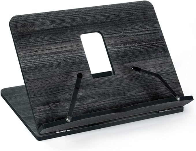 Vigo Wood Ayarlanabilir Ahşap Kitap Tutucu – 8 mm Kalınlığında Premium Ahşap, Katlanabilir Tasarım ve Sekiz Ayarlanabilir Açı – Okuma Deneyiminizi Yükseltin, Yemek Kitabı Standı, Tarif Tutucu, Tablet ve Laptop Standı