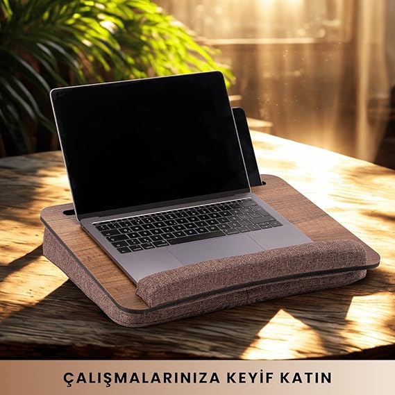 Vigo Wood Yatak Üstü Laptop Sehpası – Dizüstü Bilgisayar için Sehpa – Yatakta Kullanım İçin Laptop Standı – Minderli ve Taşınabilir Laptop Sehpası – Ev Ofis İçin Uygun – 16”e Kadar Uyumlu – Tablet ve Telefon Tutuculu Çok yönlü laptop sehpası dilediğiniz yerde rahatça laptop, çalışma, çizim, tablet sehpası olarak kullanılır.