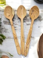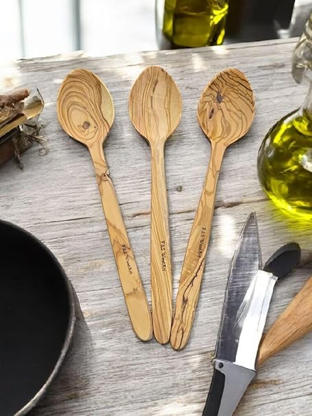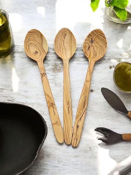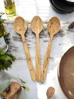 WoodArt 3 Adet Edremit Zeytin Ağacı Doğal Ahşap El Yapımı Tahta Kaşık Yemek Kaşığı 29 Cm Tencere Kaşığı