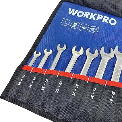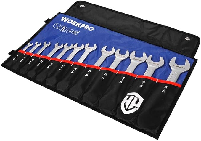 WP202507 6-32mm 12 Parça CR-V Profesyonel Açık Ağız Anahtar Takımı + Bez Taşıma Kılıfı