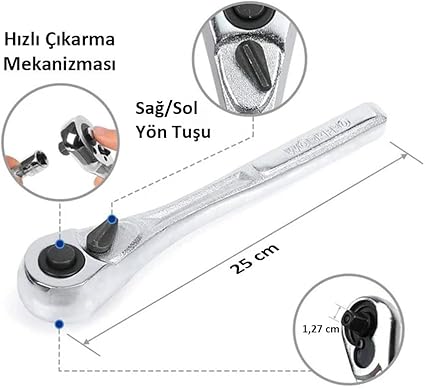 Yüksek kaliteli CR-V çelik kullanılmıştır, hassas ve ısıl işlemden sonra lokma kolu ve uçları daha sert ve dayanıklı hale getirilmiştir