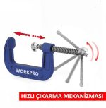 Güçlendirilmiş dövme çelik g tipi gövde ve döner vidalı sıkıştırma çene uçları sayesinde malzeme yüzeyine zarar vermez, tam kavramasını sağlar, çizilmeleri engeller ve iz bırakmaz