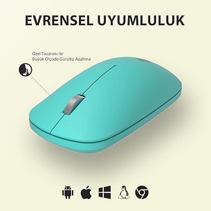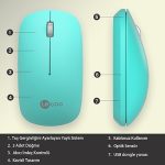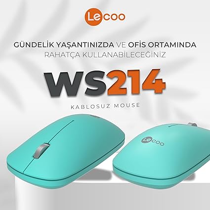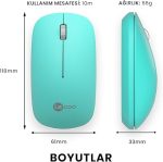 WS214 Kablosuz 1200DPI 3 Tuşlu Sağ ve Sol Elle Kullanıma Uygun 10m Kullanım Mesafesi Yüksek Hızlı Kaydırma Uzun Pil Ömrü iOS Android Uyumlu Kompakt Optik İzleme Mouse Turkuaz