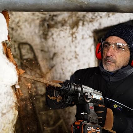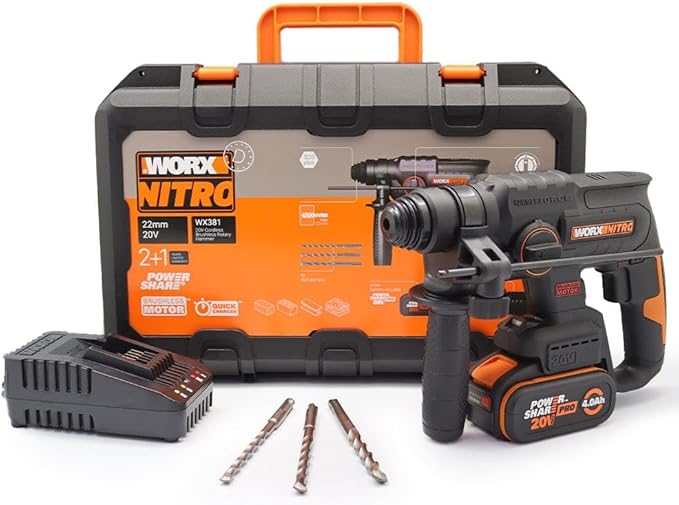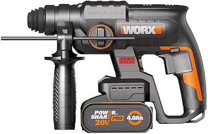 WX381 20Volt 4.0Ah. 2J Li-ion Tek Akülü Şarjlı Profesyonel SDS-Plus Pnömatik Kırıcı/Delici + 3 Parça Delme Ucu