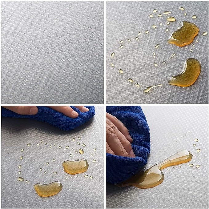 ÇEKMECE VE RAF KORUMASI: Dolaplarınızın istenmeyen kir ve birikintileri birikmesine karşı korunmasına yardımcı olacaktır. Ayrıca, bu çekmece örtüsü BPA içermez ve kokusuzdur, doğrudan meyve ve sebzelerle temas halinde kullanılması güvenlidir ve yumuşak sabun veya nemli bir bez veya süngerle kolayca temizlenebilir.