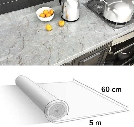 5mt X 60 Cm Mermer Desenli Masa Tezgah Mutfak Su Geçirmez Yapışkanlı Folyo Sticker