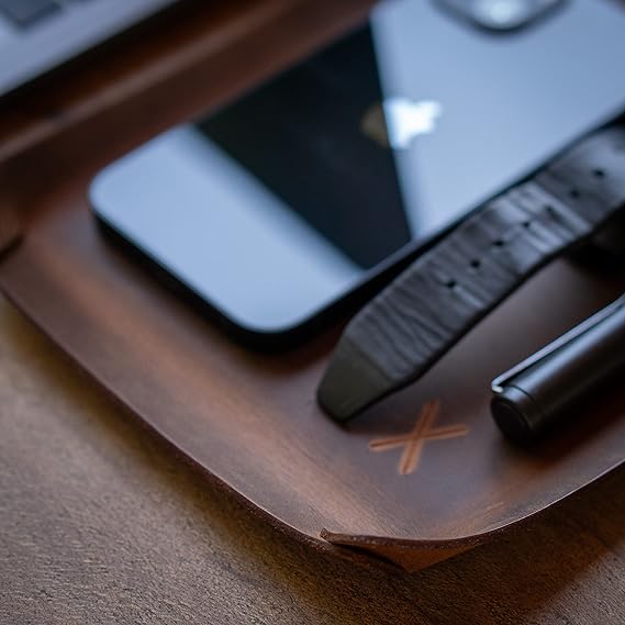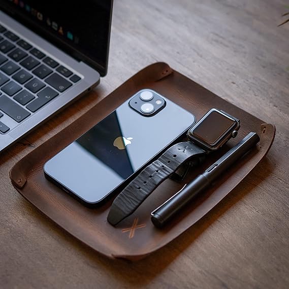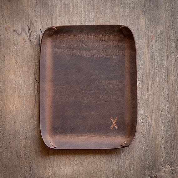 X design Masaüstü Organizer, Toplayıcı, Hakiki Deri Vale Tepsisi, Telefon pedi, Deri Sümen, Deri Pad, Deri Kase, Zarf ve Mektup Tepsisi, vallet tray, catch it all tray, leather (Taba – Açık Kahverengi)