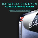 Kenarları ovalleştirilmiş lazer kesim teknolojisi ile ekranı uçtan uca kaplayan tam koruma ve kullanımda rahatsız etmeyen kenarlara sahiptir.Bu özellikle piyasadaki bir çok telefon kılıfı ile sorunsuz kullanım imkanı sunar.Genişletilmiş kavis dizaynı ile pürüzsüz kullanım avantajı ve telefonun orjinal ekranı ile aynı dokunma hissiyatı