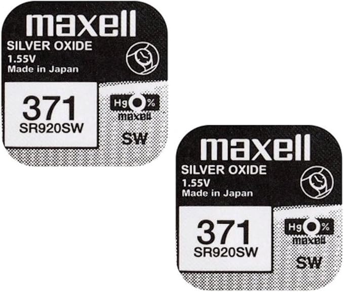 2 x Maxell 371 SR920SW gümüş oksit pil, 1,55 V.