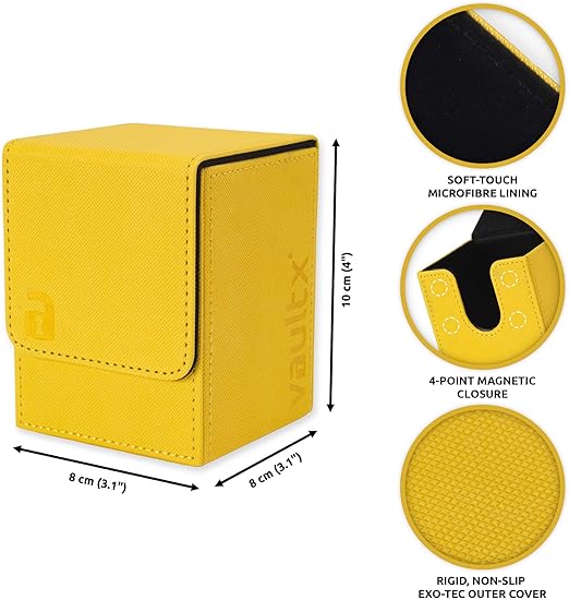 X Üstten Girişli Kart Kutusu, 80+ Kılıflı Kart Kapasiteli, Premium Exo-Tec Malzeme, Mıknatıslı Çıkarılabilir Kapaklı Saklama Kutusu, MTG Commander ve TCG için (Sarı)