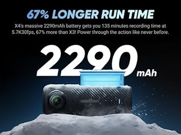 Daha büyük pil ve hızlı şarj: X4 pil 2290mAh’a güncellendi, 8K@30fps modunda 70 dakika çalışma süresi sağlar, 9V 2A’da yalnızca 60 dakika şarj süresi sağlar (36 dakika içinde% 80’e kadar şarj olur)