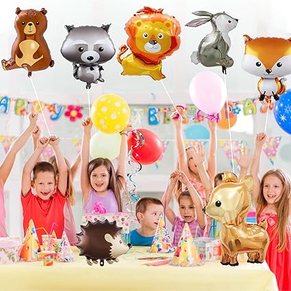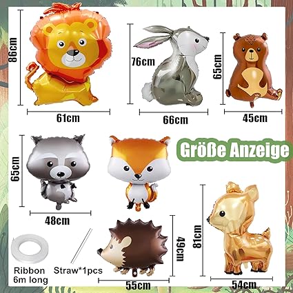 Tercih edilen malzeme: Orman hayvanları doğum günü dekorasyonu yüksek kaliteli alüminyum folyodan yapılmıştır, güvenli, zehirsiz, güçlü ve uzun ömürlü, helyum balonları, doğum günü açma ve kapama valfli, tekrar kullanılabilir.