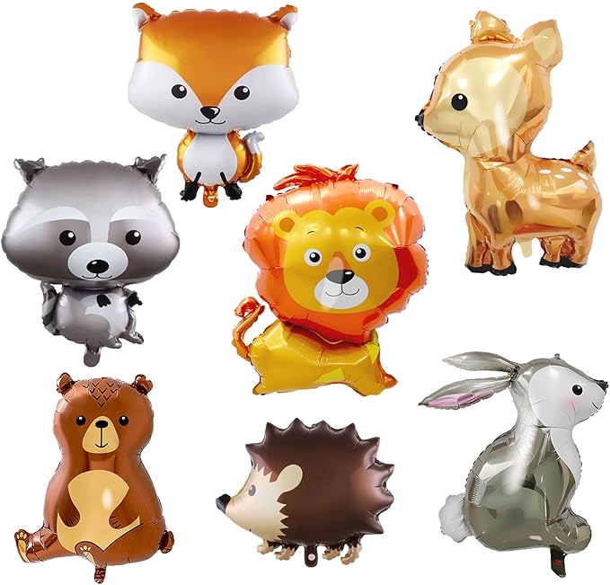 Orman hayvanları balon doğum günü seti: Kirpi, tilki, rakun, geyik, orman ayısı, tavşan, aslan, 7 farklı balon hayvan, 5 m bantlı 1 rulo ve 1 pipet. Hayvan balonları ideal hayvan parti dekorasyonu!