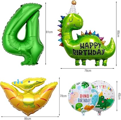 Dinozor Balonu 4 Yıl Doğum Günü: Bu 4 Yaş Dinozor Doğum Günü Partisi Seti Çocuğunuz İçin Büyük Bir Sürpriz Olacak. Farklı dinozor şekillerine sahip folyo balonlar göz alıcı parti dekorasyonları sağlar. Dinozor dekorasyon seti doğum günü partileri, jurassic temalı partiler, orman hayvanları partileri veya dinozor temalı partiler için mükemmeldir.