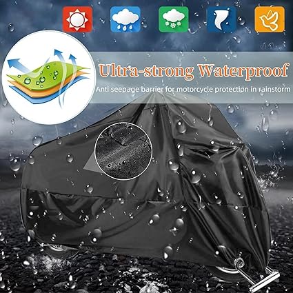 【Yüksek Su Geçirmez Performans】 Motosiklet brandasının yüzeyi, kalın bir su geçirmez tabaka oluşturmak için özel olarak işlenmiştir. Su damlaları temas ettikten sonra hızla akar. Dokuma yapı ve su geçirmez kaplama, sert yağmurlu günlerde yağmur suyunun girmesini etkili bir şekilde engelleyebilen, aracı kuru tutabilen ve yağmur suyunun erozyonunu ve hasarını önleyebilen güçlü bir bariyer oluşturur.