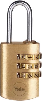Y150B/22/120/1 Şifreli Pirinç Asma Kilit, Standart Koruma, Çelik Halka, 3 Haneli Şifre, 22 mm, Sarı
